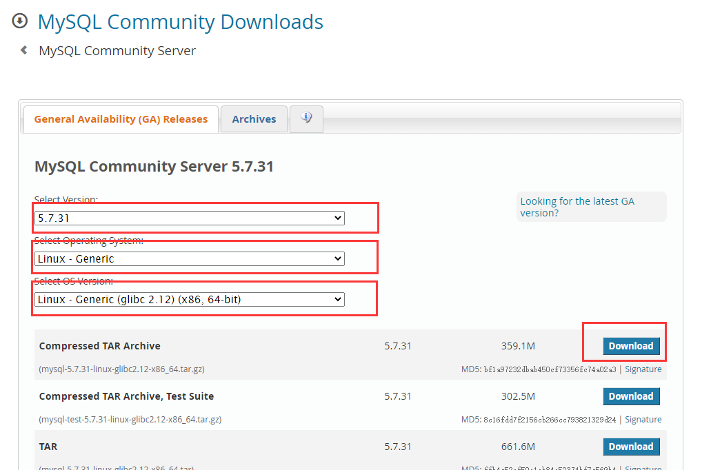 wget https://dev.mysql.com/get/Downloads/MySQL-5.7/mysql-5.7.31-linux-glibc2.12-x86_64.tar.gz