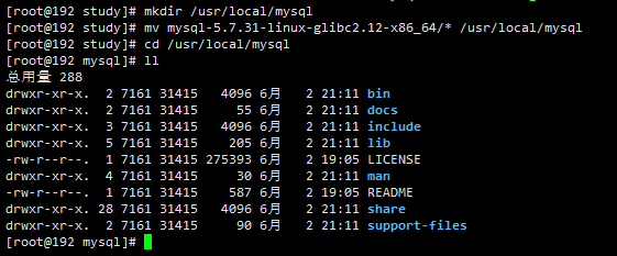 mv mysql-5.7.31-linux-glibc2.12-x86_64/* /usr/local/mysql