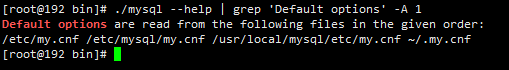 从5.7.18开始不在二进制包中提供my-default.cnf文件,所以这里要查看一下mysql对于配置文件的查找路径,越左优先级越高