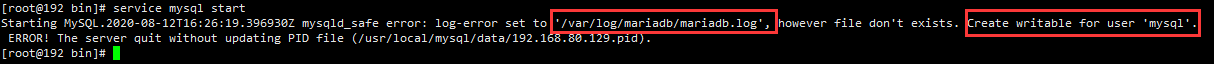 启动报错:/var/log/mariadb/mariadb.log日志文件不存。那么创建