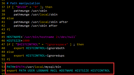 54 export PATH USER LOGNAME MAIL HOSTNAME HISTSIZE HISTCONTROL