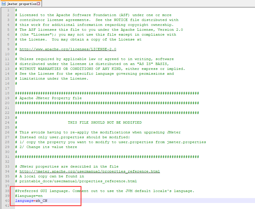 修改jmeter.properties配置文件(该文件在bin目录下)