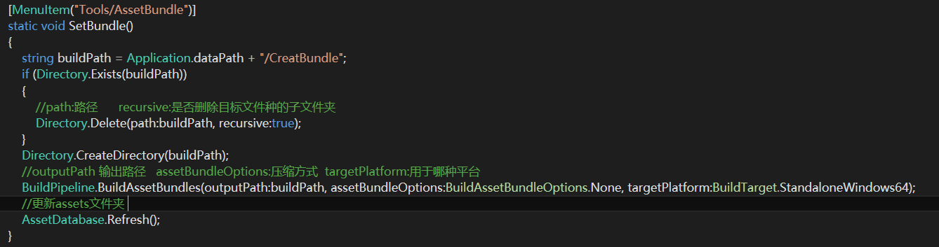 BuildAssetBundleOptions.None:运用了LZMA压缩算法,压缩的包更小,加载时间长。使用前将整体进行解压。