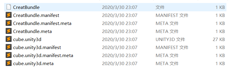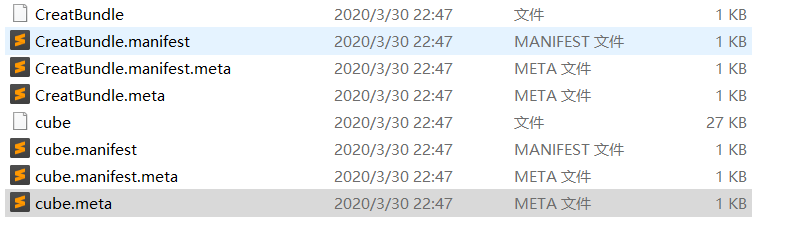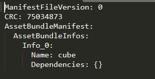 creatBundle.manifest包含了这个包中打了多少东西 ,这一次我们只对cube进行打包, crc是校验码当想更新资源时可通过crc来校验