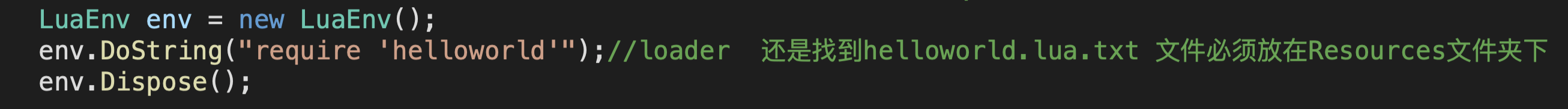 Resourse文件夹中的lua脚本的名字叫 helloworld.lua.txt所以我们加载的时候的名字叫为"helloworld.lua"