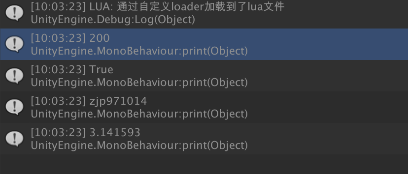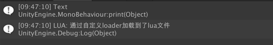 如果我们不手动的去在Resources文件夹中加载 xlua也会先在Resources文件夹下去找你想要的lua文件自己加载输出如图(xlua自带loader加载)