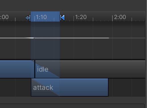 //当开始播放attack动画的时候他不会立即进入而是回在idle -> attack的过程中 而返回的名字仍然是idle 所以要判断是否进入attack动画