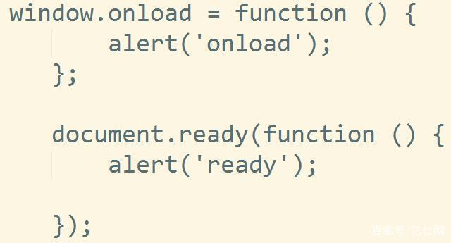 执行这段代码之后,你会看到浏览器里面会先弹出ready,在弹出onload。