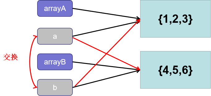 System.out.println("交换前:"+Arrays.toString(arrayA)+" "+Arrays.toString(arrayB));