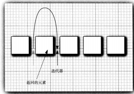 Java的迭代器可以认为是处于两个元素之间,当调用next时,迭代器越过下一个元素,并返回这个元素的引用。