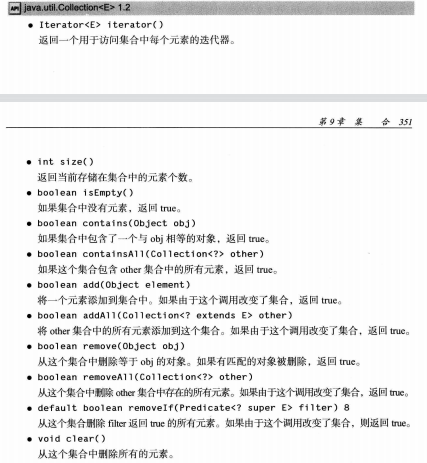 使用Conllection与Iterator两个泛型接口,可以编写出适用于任何集合类型的实用方法。同时,想要编写一个集合类也可以扩展AbstractCollection类,该类包含一些集合通用操作方法的实现。