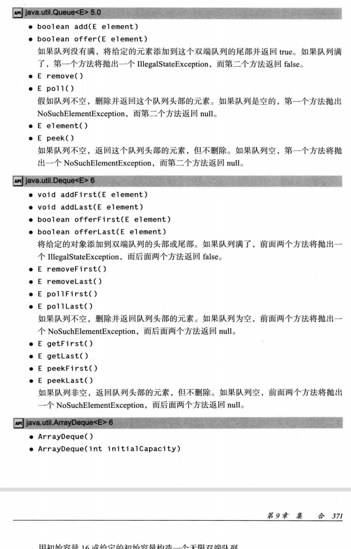双端队列(Deque)支持在队列头部或尾部同时添加或删除元素。其可由ArrayDeque和LinkedList这两个实现了Deque接口的类实现。