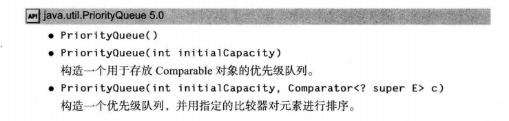 优先级队列(priority queue)中的元素可以按照任意的顺序插入,却总是按照排序的顺序进行检索。即不误何时调用remove方法,总会会的当前优先级队列中最小的元素。优先级队列是用堆(heap)实现的,因此它并没有对元素进行排序,而是每次用迭代的方式调整这些元素。