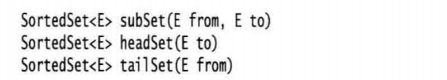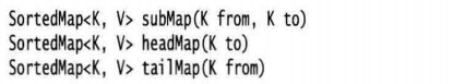 对于实现了SortedSet与SortedMap接口的有序集和映射,可以使用排序顺序而不是元素位置建立子范围。