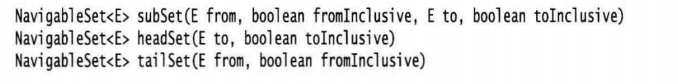 而对于Java 6的NavigableSet接口可以赋予更多的子范围控制能力。可以指定是否包含边界。