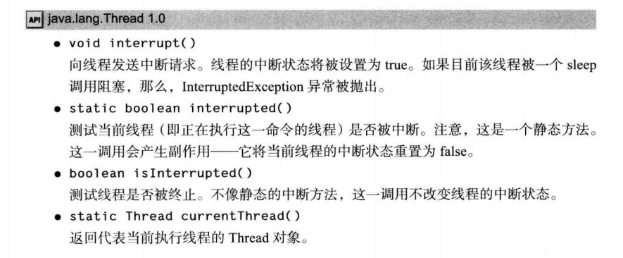 Java中的线程时协作式的而非抢占式的,因此现在也没有可以强制终止线程的方法。不过,可以通过interrupt方法来请求终止线程。