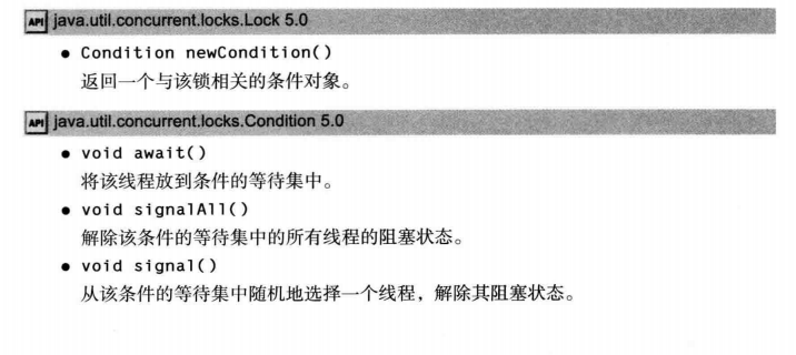 同样地,使用条件对象的await方法时也可以指定一个时间,若等待时间超过了指定时间就自动解除等待状态。