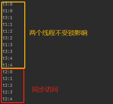 t3.start(); //使用其它的对象锁,不会发生同步