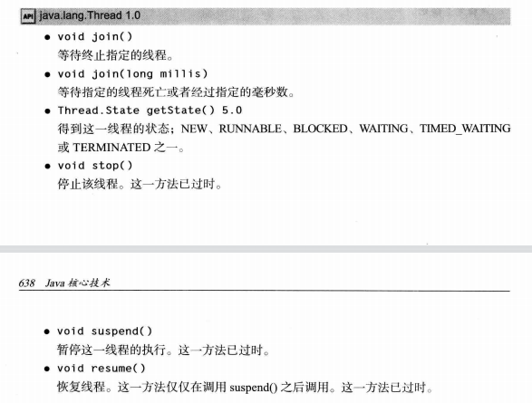 对于stop方法,调用它将会不顾后果的终止线程。由于线程执行的不可知性,你无法知道当前线程执行到哪,所以直接终止线程可能会造成对象不一致的状态(如银行转账过程中线程突然停止)。