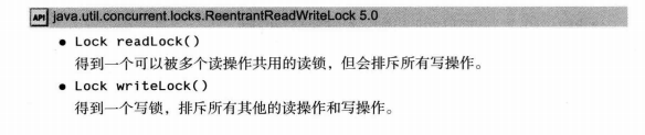 ReentrantReadWriteLock读写锁类与可重入锁一样都在java.util.concurrent.locks包下。该锁可以根据需要对读写操作进行划分然后施加不同的锁。读写锁适用于读多写少的情况,ReentrantReadWriteLock类同时维护一个读锁与写锁,当有线程进入读锁封锁区域时,其它线程可以进入读锁封锁区域,但进入写锁封锁区域则需要等待释放读锁。当有线程进入写锁封锁区域时,任何线程对于写锁和读锁封锁区域都不能进入。示例如下:
