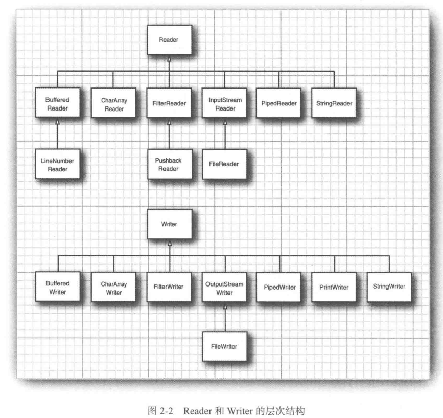 面向字节的流不适合与处理Unicode形式存储的信息,所以从抽象类Reader和Writer中继承出来一个专用于处理Unicode字符的类层次结构,这些类操作针对与两个字节的Unicode代码单元(一个char的表示范围)而不是的单个字节。