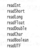 例如,writeInt方法接收一个int,在输出时总是把参数写出为一个4字节的二进制值。而writeDouble总是将一个double输出为8字节的二进制值。因此对于给定类型的每个值所需空间是相同的,这样将其读回的速度也比解析文本更快。