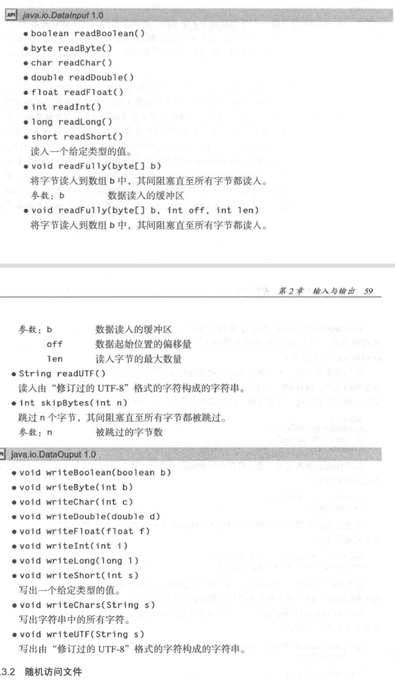 DataOutput/DataInput接口:DataOutput接口定义了一些以二进制格式写数组、字符、boolean和字符串的方法。