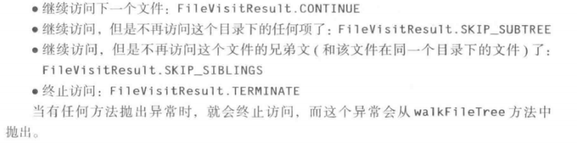 return FileVisitResult.TERMINATE; //意为遇到一个异常则整体终止访问并抛出这个异常