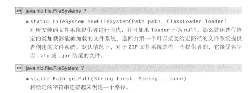 Paths类会在默认文件系统中查找路径,即用户本地磁盘中的文件。你也可以有别的文件系统,其中最有用的之一就是ZIP文件系统。使用该系统可以以ZIP文档作为目录并在其中进行文件操作。