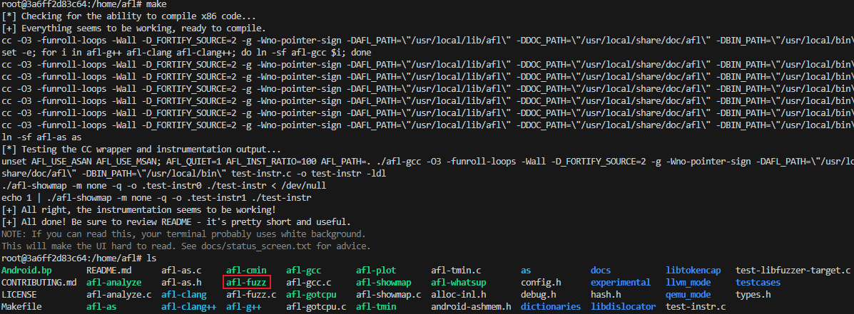 进入到容器里的home下,下载afl源码如何进行编译并安装。