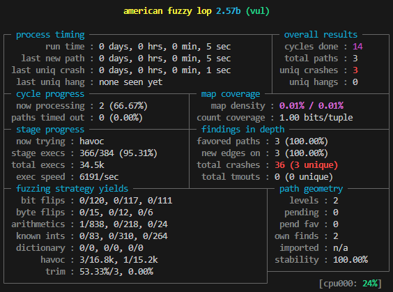 afl-fuzz -i fuzz_in -o fuzz_out ./vul