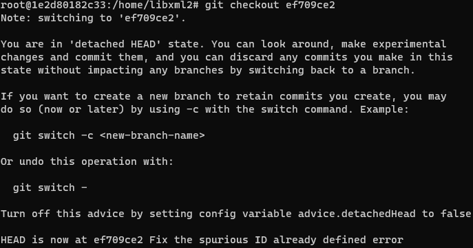设置要进行fuzzing的目标,即设置要进行fuzzing的函数或代码行,这里以libxml2的ef709ce2这次变更点为fuzzing目标。