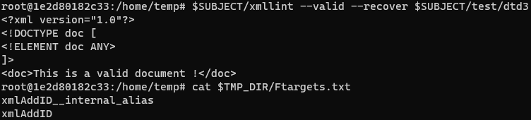 $SUBJECT/xmllint --valid --recover $SUBJECT/test/dtd3