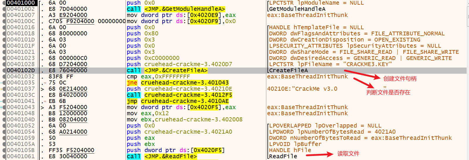 程序先判断是否有CRACKME3.KEY这个文件,如果文件不存在则直接跳过读取文件,运行主窗口程序,并且主窗口名显示位Uncracked
