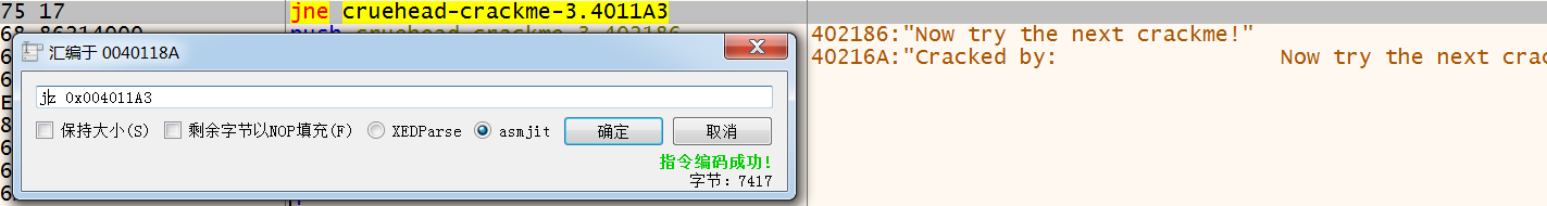 根据字符串查找的方法找到关键的跳转指令,从后往前查找并进行更改尝试