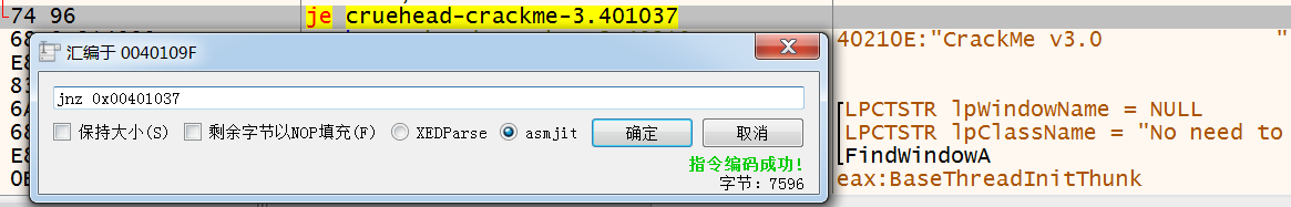 当创建好了文件,就只需要修改最上面的两个跳转点即可实现完全破解