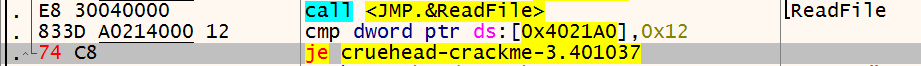 读取文件后,将对文件的内容进行检测,这里文件里的数据大小必须为0x12个字节(18个字节)