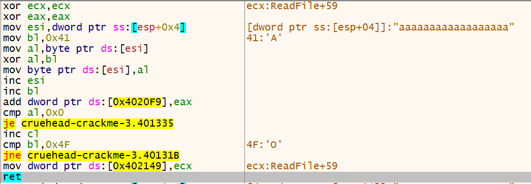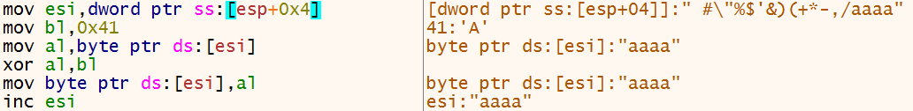 第三行指向从文件里读取的内容,然后再给ebx低位bl初始化为0x41