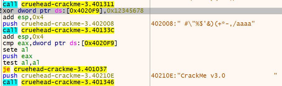 函数返回后将0x4020F9的值与0x12345678进行异或并赋值给0x4020F9
