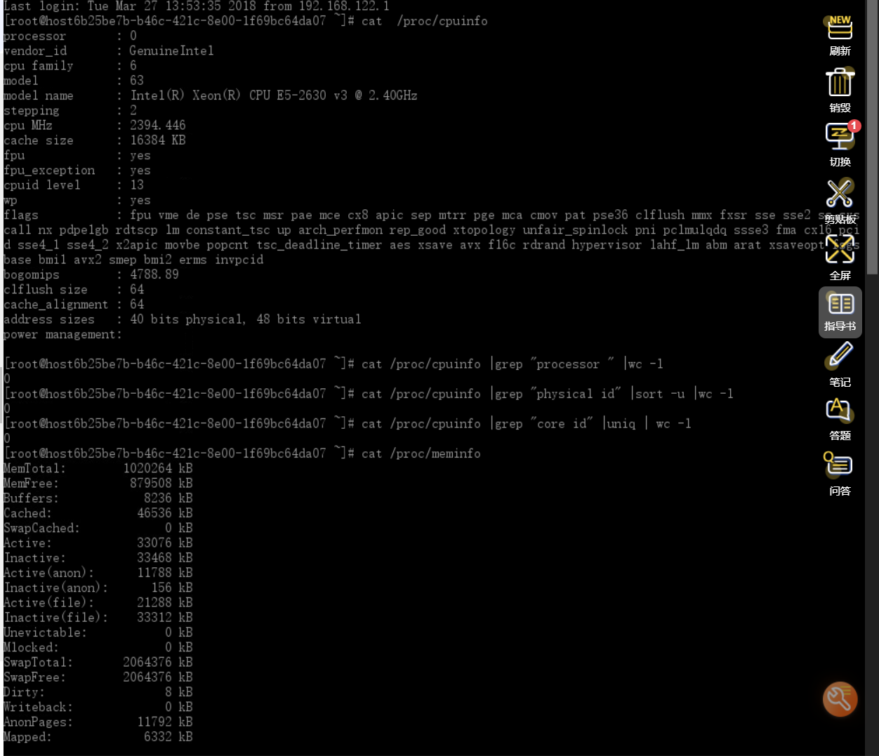 | cat /proc/cpuinfo | 查看cpu信息 |