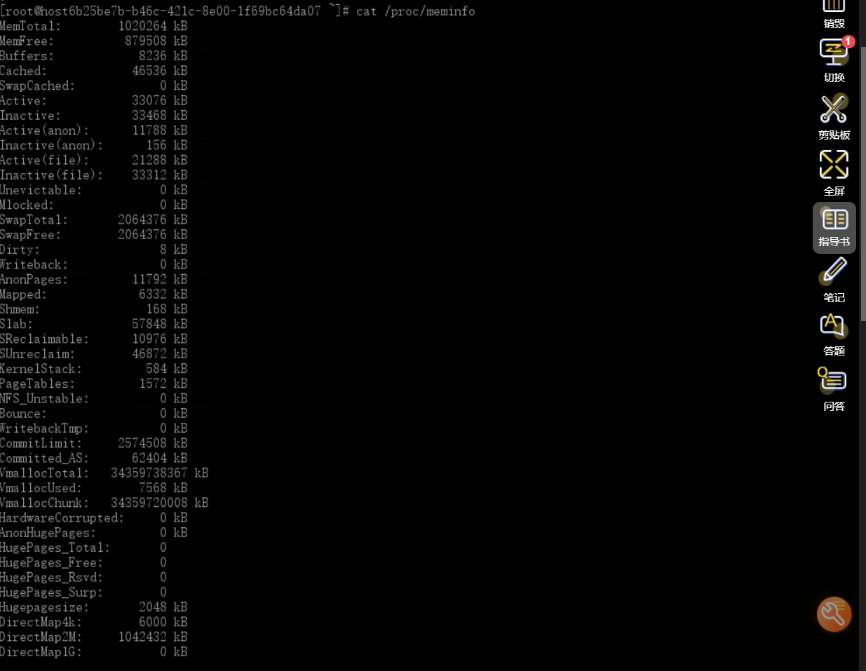 | cat /proc/meminfo | 查看linux的内存信息 |