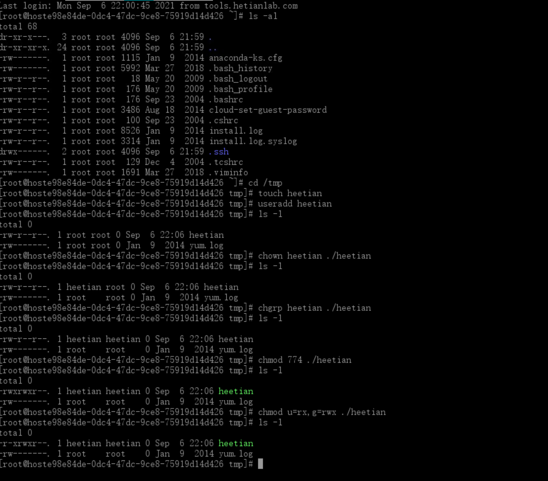 答: 更改tmp/heetian.txt 的所有者和用户组为root