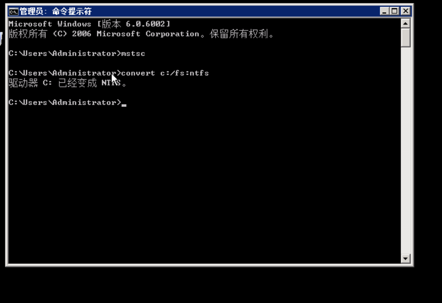 6.文件系统安全:使用NTFS文件系统查看每个系统驱动器是否使用NTFS文件系统,如果不是,使用转换命令:convert <驱动器盘符>: /fs:ntfs 。