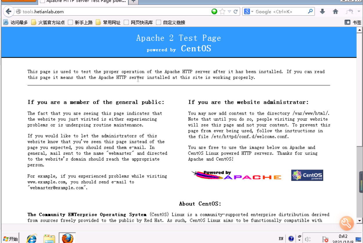 步骤一:未设置防火墙时,测试本机可访问网站。