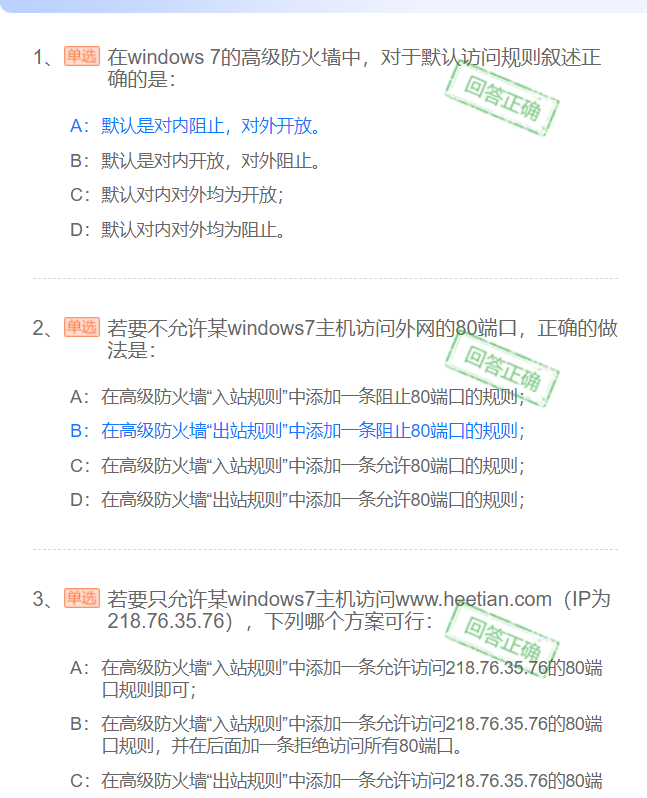 设置出口规则为“阻止对80端口的TCP连接”(即禁止访问Web服务器)。分为如下若干小步骤:
