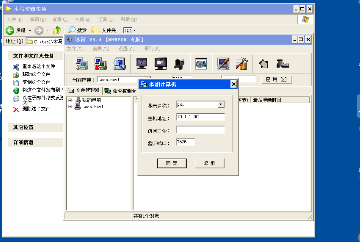 本实验通过对木马的练习与实践。使学习者理解和掌握木马的运行与传播的机制,共分为三个实验任务,详情如下: