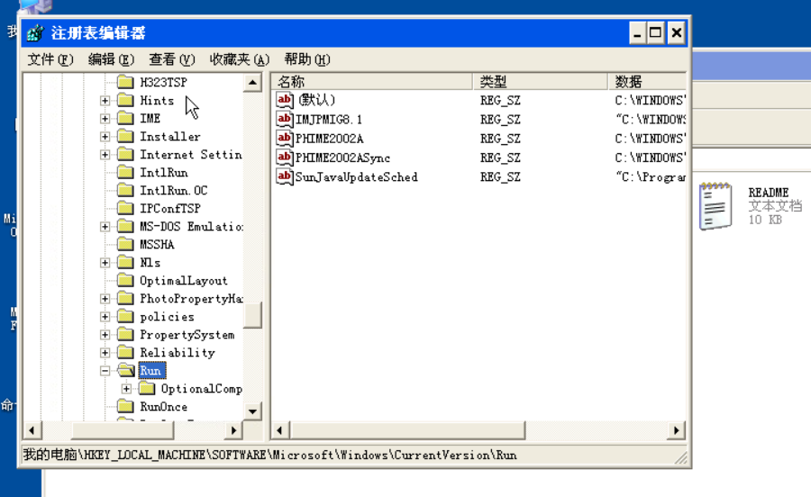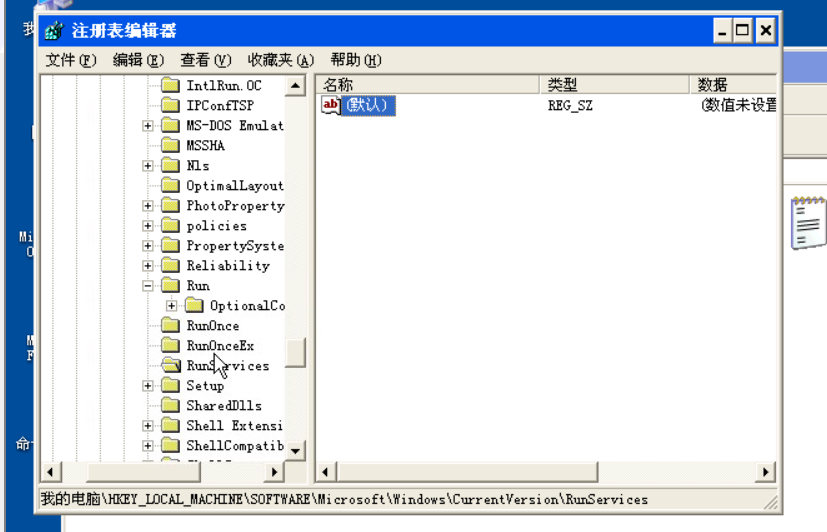 上面两个注册表的子键目录Run和Runservices中存放的键值是系统启动时自动启动的程序,一般病毒程序,木马程序,后门程序等都放在这些子键目录下,所以要经常检查这些子键目录下的程序,如果有不明程序,要着重进行分析。