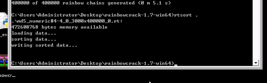 切勿中断rtsort程序; 否则被分类的彩虹表可能会被损坏。