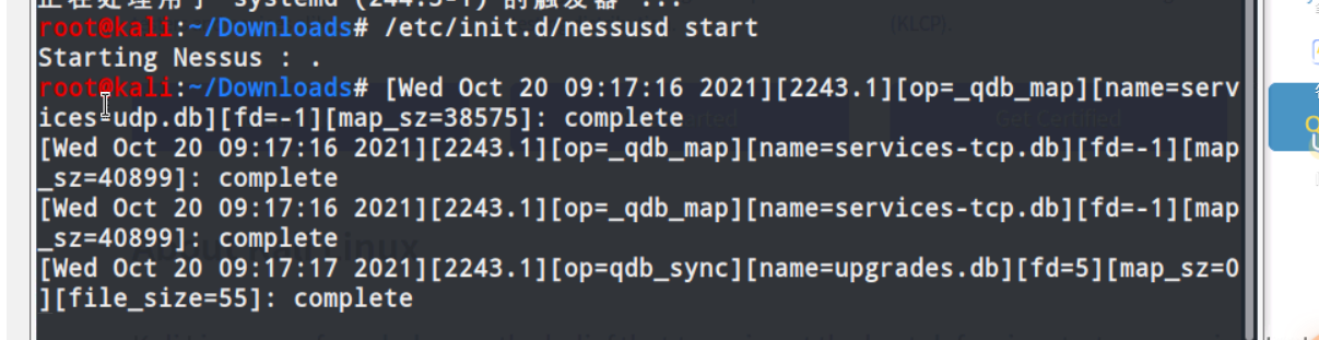 执行命令 /etc/init.d/nessusd start 启动Nessus服务