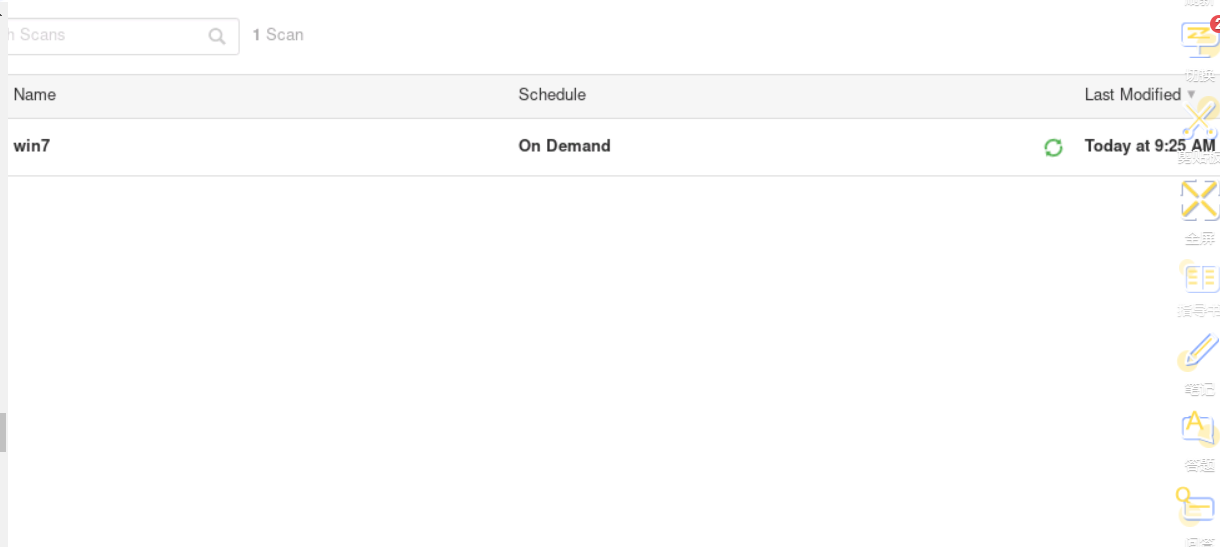 配置扫描信息,主要设置扫描名称、描述和扫描目标三个信息即可,其他配置选择默认,配置完成点击Save。选择对整个10.1.1.0/24网段进行扫描。